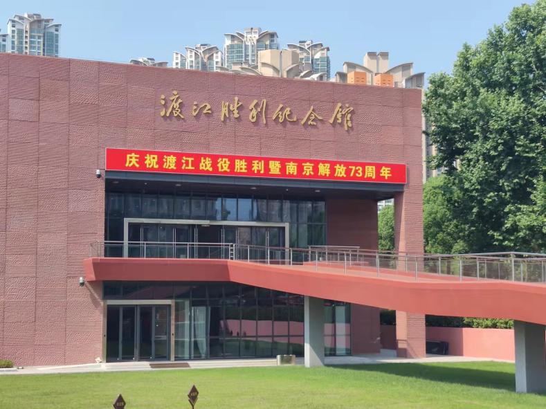 南京渡江胜利纪念馆由主馆区、渡江胜利广场等部分组成。红色木船外形的主展馆上是由邓小平同志亲笔题写的“渡江胜利纪念馆”,引人注目,气势恢宏。胜利广场上矗立着大型红色群雕“千帆竞渡”,如风帆也似红旗,静静屹立于长江之滨的秦淮河口,诉说着荡气回肠的革命故事。踏上通向场馆的“胜利之桥”,桥边是“京电”号小火轮,作为渡江战争的“亲历者”,它将带我们穿行在那段峥嵘岁月之间,并装载渡江精神,驶向远方。