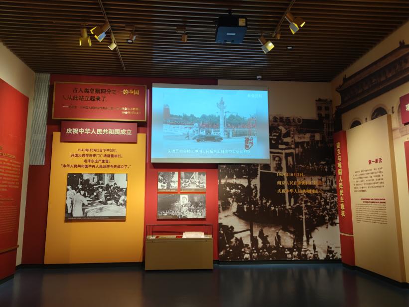 中国共产党南京历史展览共设置序厅及“钟山风雨——浴血奋战”夺取新民主主义革命的伟大胜利、“石城新生——奋发图强”进行社会主义革命和建设、“金陵春潮——奋勇争先”推进中国特色社会主义南京实践、“南京奋进——践行嘱托”建设“强富美高”新南京这样四个部分,以时代变迁为顺序将南京地区中国共产党成立以来的重要人物、重大决策、历史功绩以及对应到国家发展与人民生活的具体成果一一展现,其中包括中华人民共和国成立、改革开放、抗击非典、抗击新冠等重大事件,贴近生活,引起全体参加师生的共鸣。